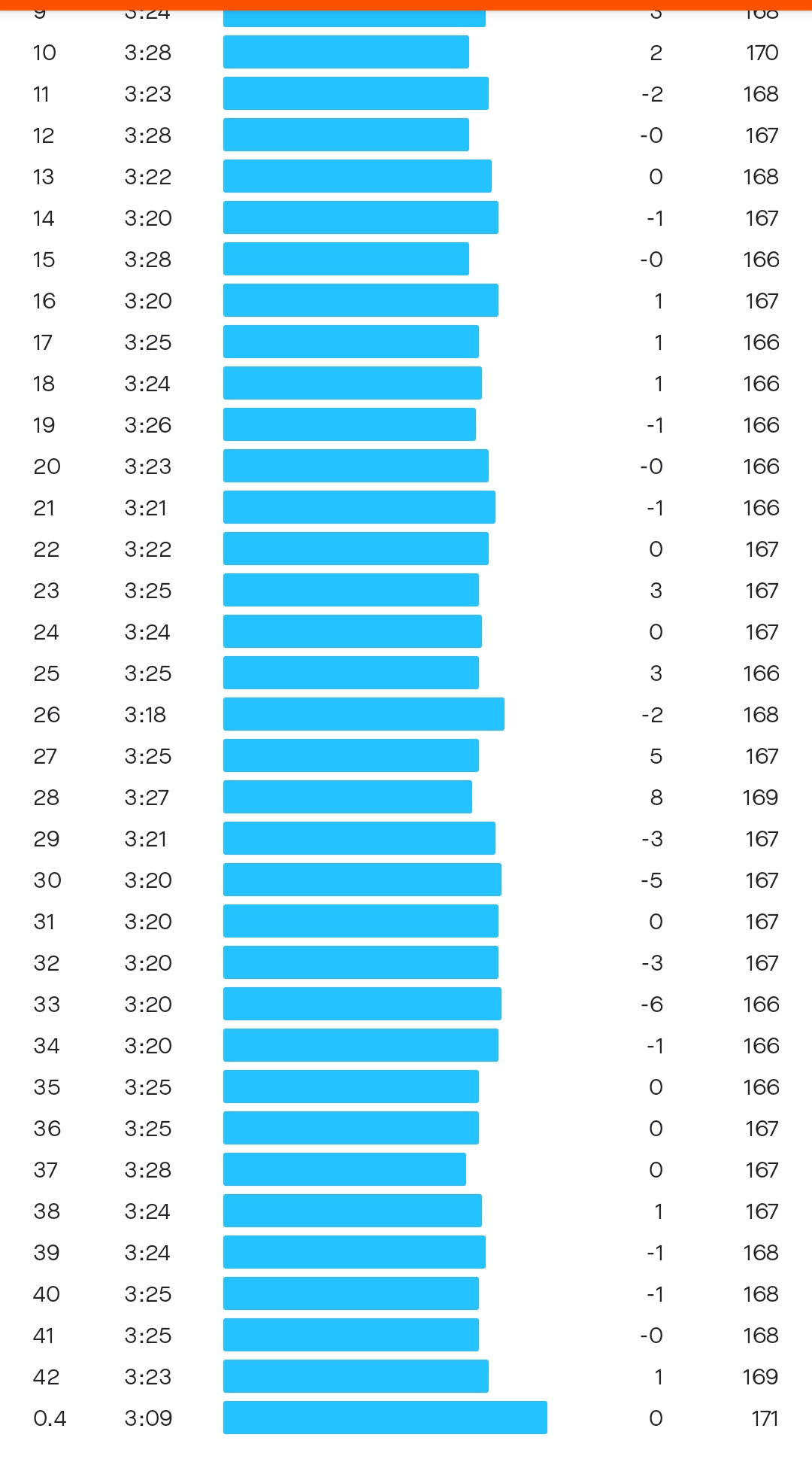 C'est le cas aussi pour le vainquer feminin, 3'19 pour le 38eme et 2'55 le 39eme puis 3'32 pour 40eme.