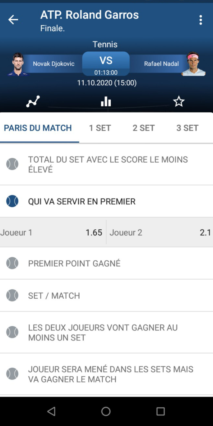 Il me semble que dans leur confrontation, la règle du serveur en premier s'inverse. La cote de 1.65 pour djoko ne parait pas si farfelue.