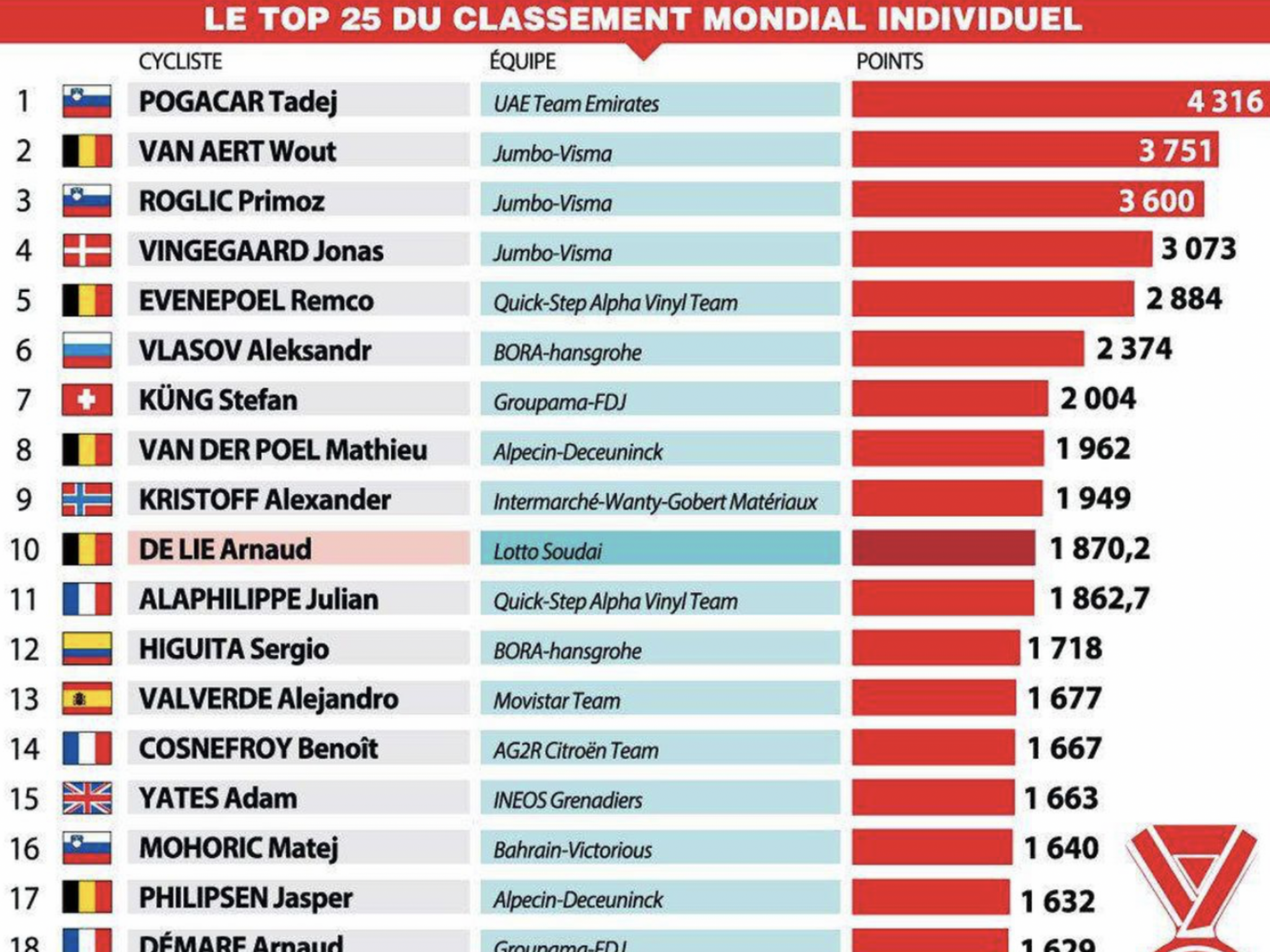 Remco prend le maillot rouge, le Molard omar est toujours pas arrive.