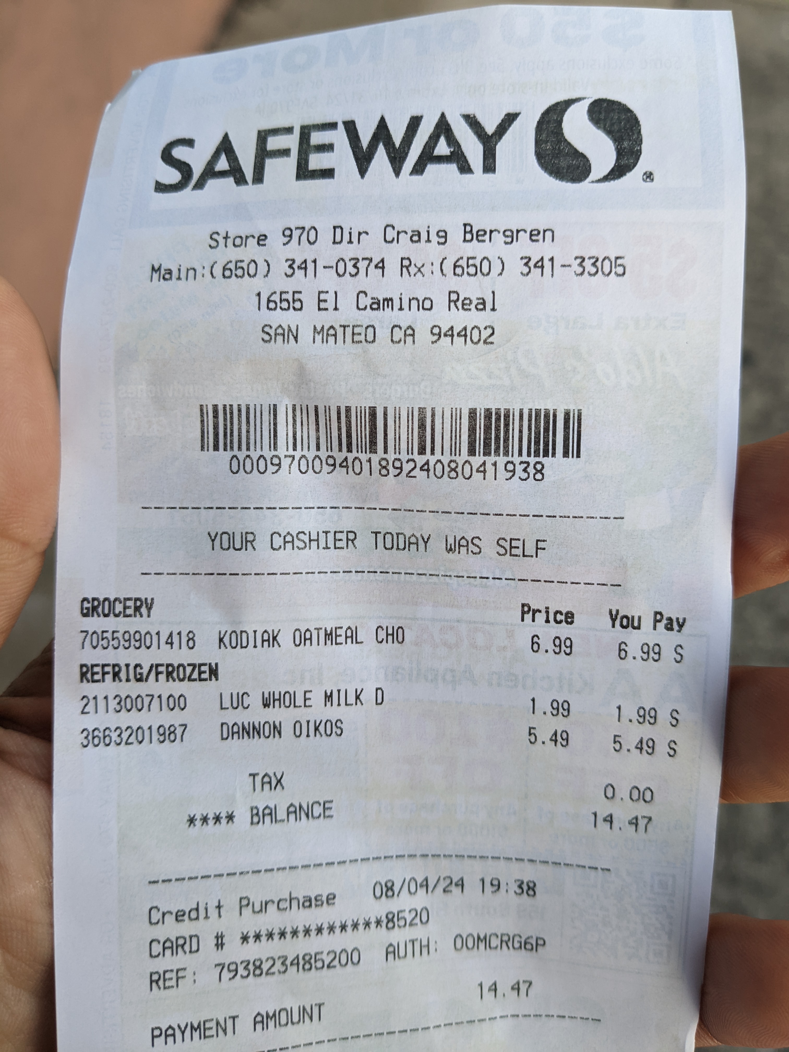 1 lait premier prix, 4 yaourt et des flocons d'avoine, cette violence