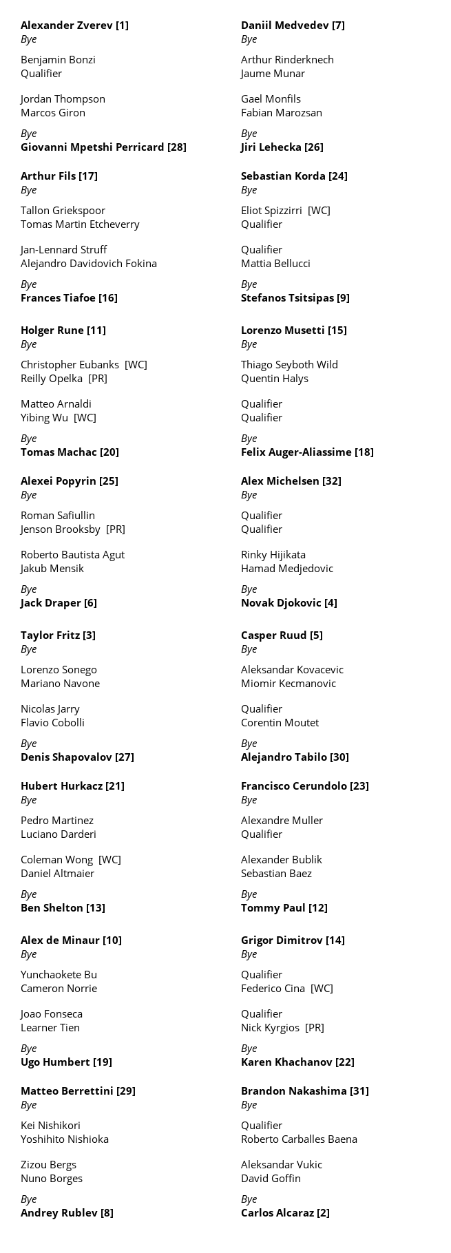 Avec un tableau si profond pour quasi tous les M1000, les habitués des qualifs comme Rinderknech , Moutet et compagnie sont déjà dans le grand tableau